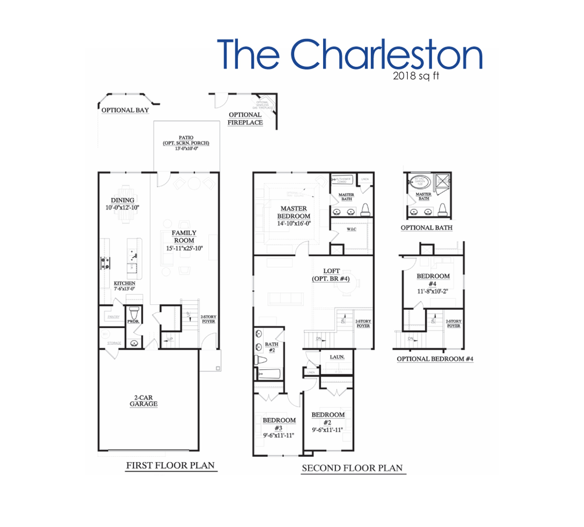 The Charleston is 2,018 square feet, two story, three bedrooms and two bath home. The Charleston has 4 options exterior styles you can choose from. Optional fourth bedroom.