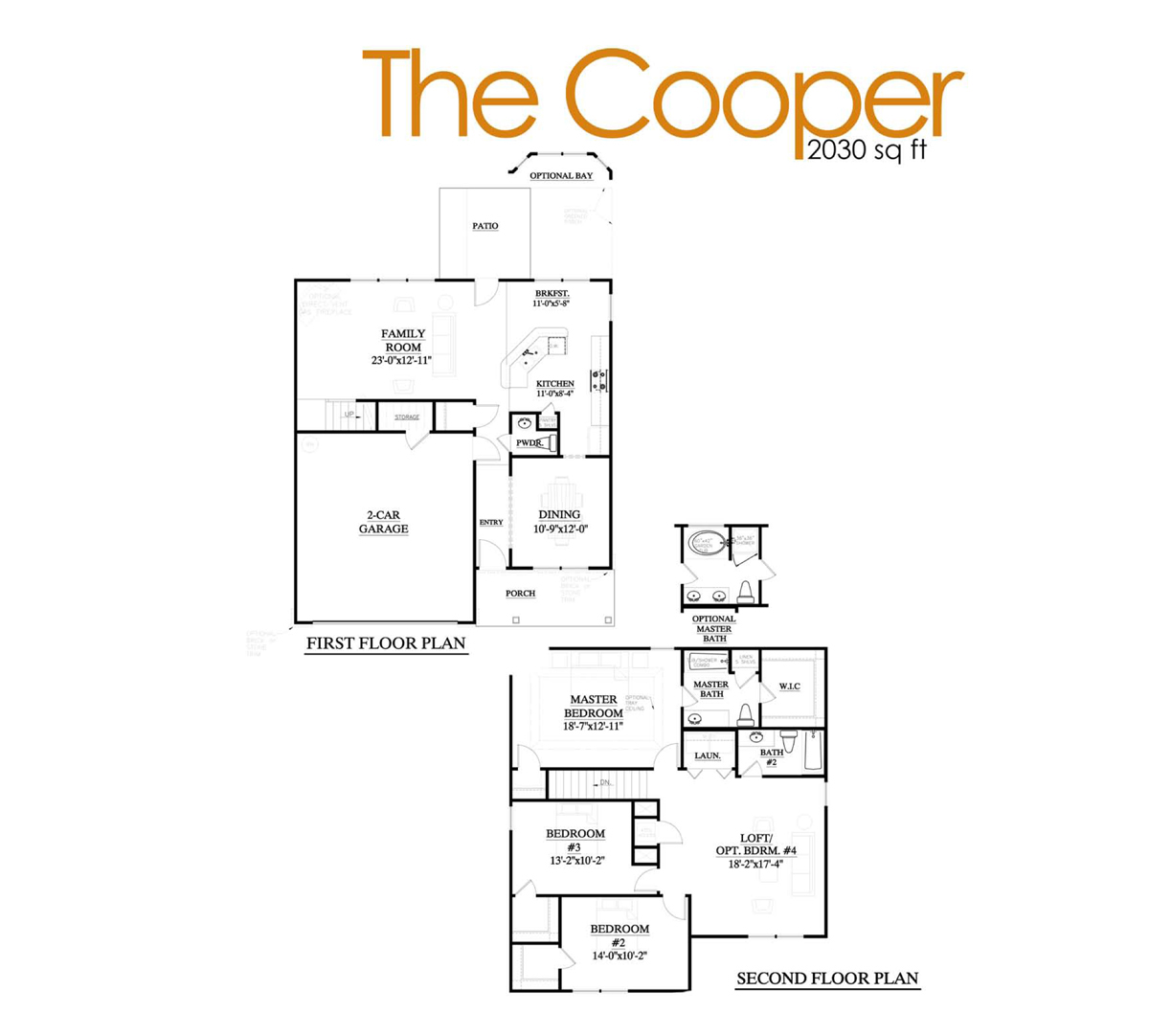 The Cooper is 2,030 square feet, two story, three bedrooms and three bath home. The Cooper has 4 options exterior styles you can choose from, plus an optional fourth bedroom.